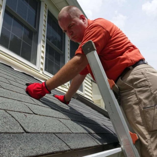 Roofing including visual inspection of any chimneys present